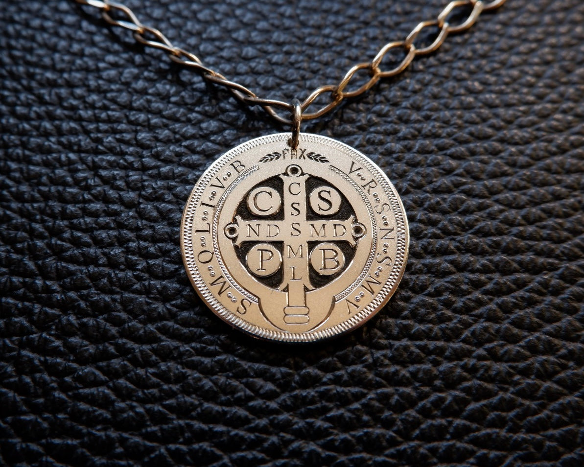 St.Benedict Exorcism Prayer Pendant - Hand Engraved In Sterling Silver